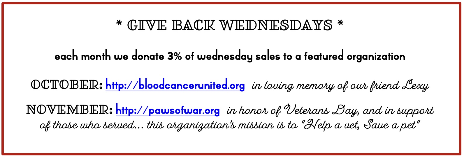 Happy Mondays: Happy Hour available all day / Taco Tuesdays / Give Back Wednesdays